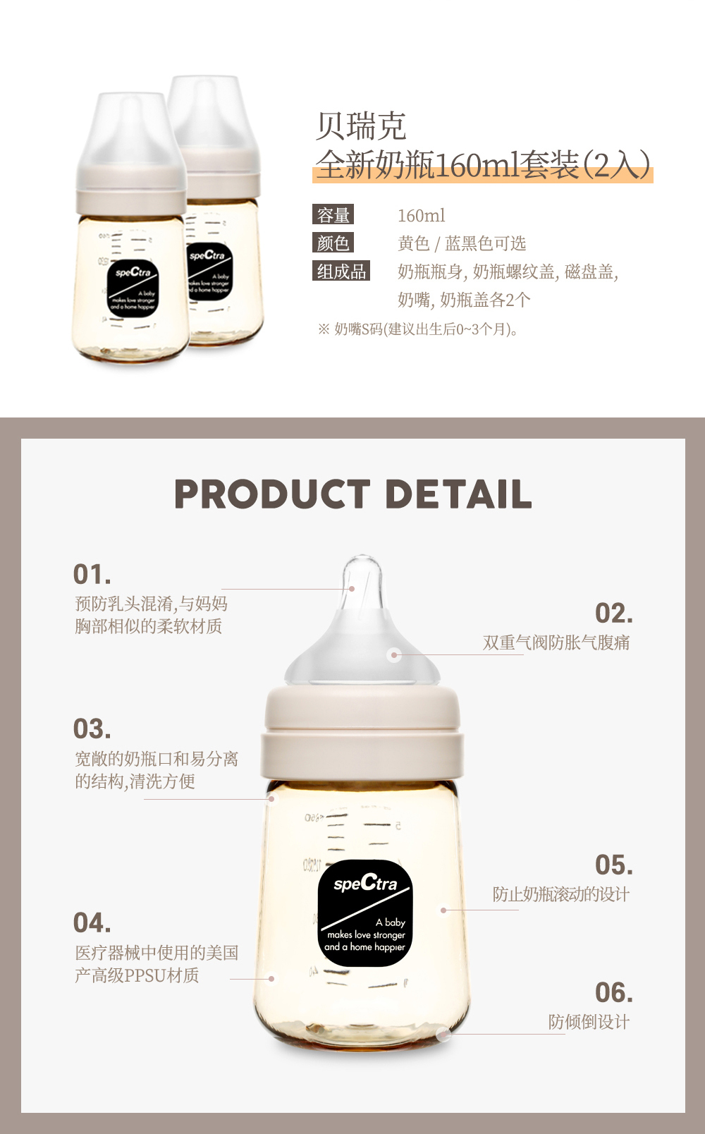 貝瑞克 全新奶瓶160ml(2入)